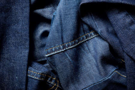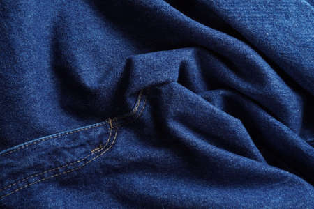 Close-up of blue denim texture. Denim jeans background, space to copy your design or text.