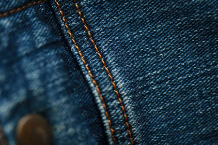 Close up back blue Jeans denim pocket texture.