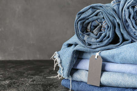 Beauty and fashion, clothing concept - stack of jeans.