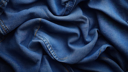 Close up of blue denim fabric texture, a versatile and durable material commonly used in jeans, workwear, and casual clothing design