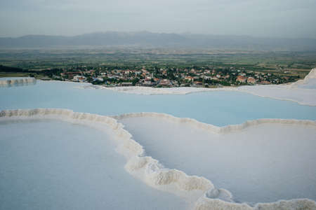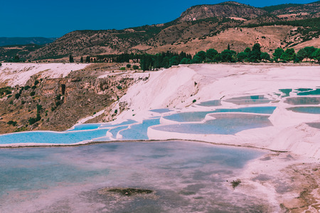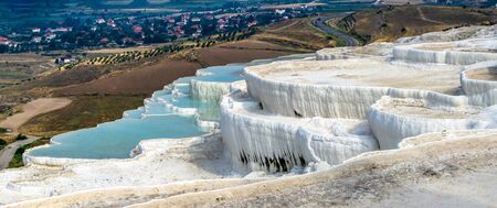 Thermal springs of Pamukkale with terraces and natural pools in Denizli in southwestern Turkey