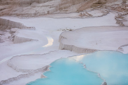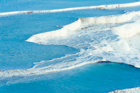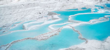 Pamukkale travertines pools and terraces. Denizli, Turkey. Natural site of hot springs and travertines, terraces of carbonate minerals.