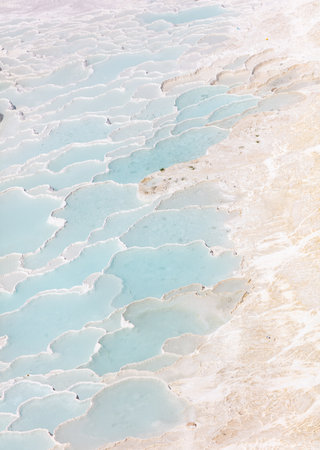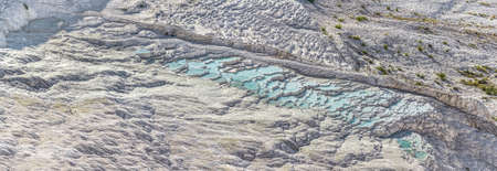 Closeup natural travertine pools and terraces, Pamukkale, Turkey