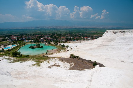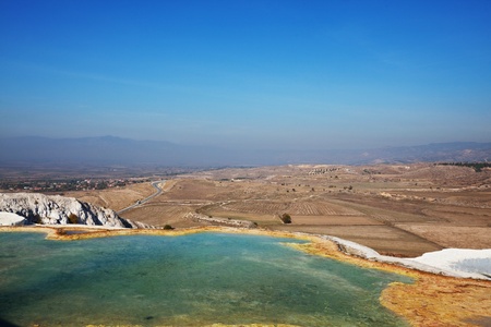 Lake surrounded with travertine, Pamukkale, Denizli, Turkey