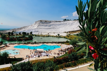 Vacation in Turkey, visit of the white patios and pools from Travertin in Pamukkale