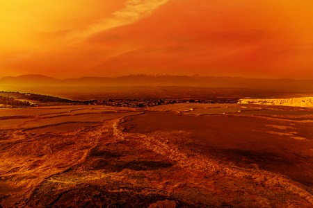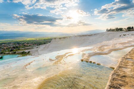 landscape of pamukkale, turkey. Sunset at pamukkale turkey