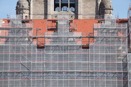 Reconstruction of an Old Apartment Building, Covered Scaffolding and a Closed off Street and Sidewalk