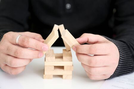 business concept plan and risk project business team work image by Wood block tower with architecture model