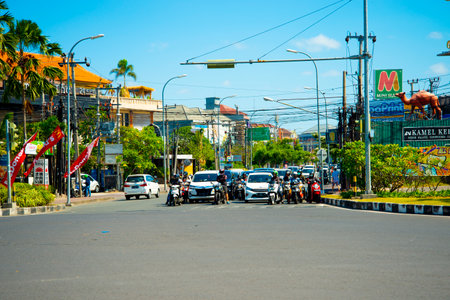 DENPASAR, INDONESIA - September 2, 2019: Local & tourist traffic in Bali