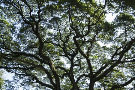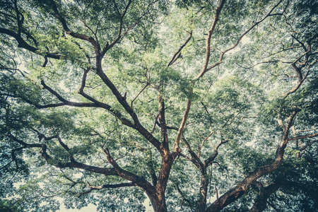 A large tree branch background,Beautiful green tree with branches and leaves.Under the shade of tall trees in tropical.