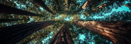 Majestic Giant Redwood Trees Towering Above, Creating a Natural Canopy and Skylight in Nature