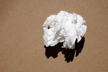 White Tissue Scraps on Brown Background – Clean-Up Concept in Daily Life