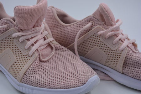 Stylish women's sneakers on a white and pink backgrounds. Women's sports shoes