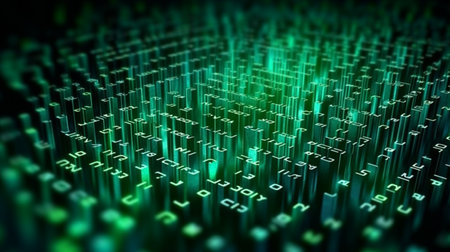 A captivating green digital matrix background featuring glowing binary code and abstract lines. Ideal for technology, innovation, and data visualization themes.