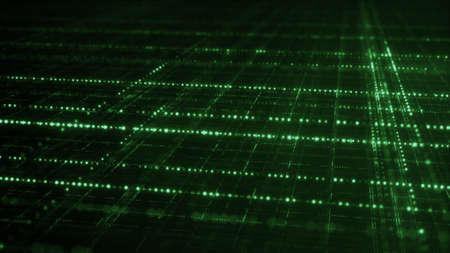Cyberspace with green multilayered grid. Information technology futuristic concept. Computer generated image rendered with DOF