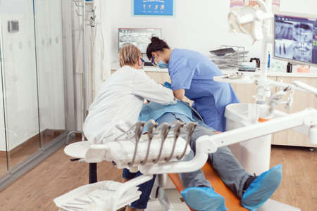 Medical team checking toothache treatment working in dentistry clinic office