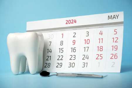 Dentist appointment concept with a calendar and dental equipment's.