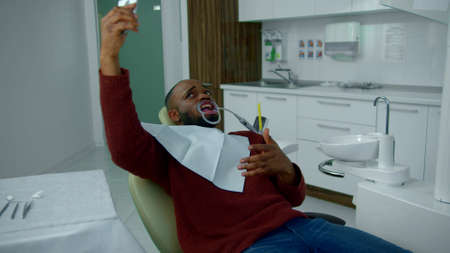 African patient in dentistry sitting in dental chair