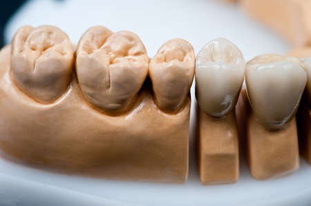 dental ceramic metal bridges are on the table