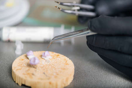 Closeup of laser etching teeth procedure for Direct Bonding of