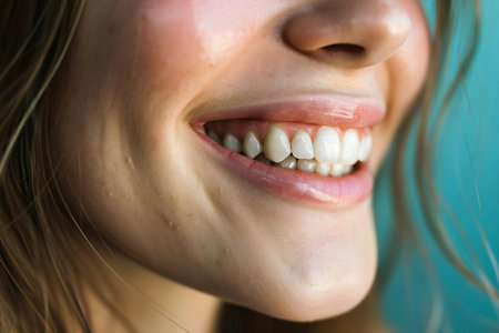 Close-up of a woman's smiling mouth showing teeth