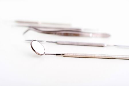 Row of various dental tools isolated on white
