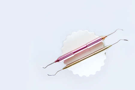 Periodontal scalers on the light blue background