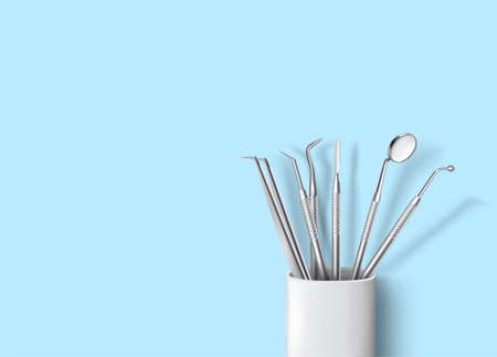 Dental tools on blue background