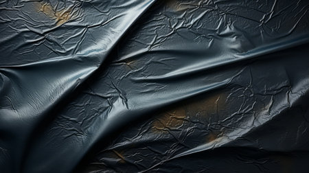On black wrinkled old paper, a crumpled black ball. close-up. Black on black