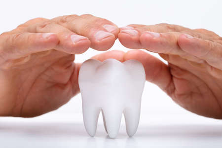 Close-up Of A Man's Hand Protecting Healthy Hygienic White Tooth