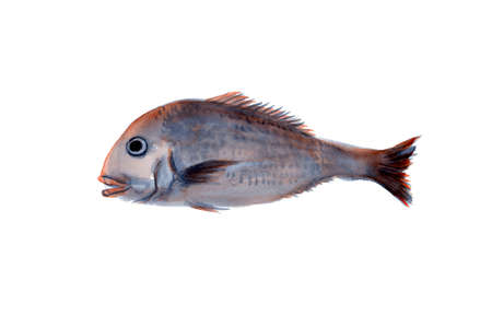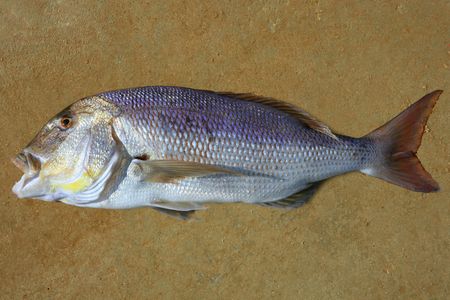 Raw gilthead with shiny scales and tiny fin