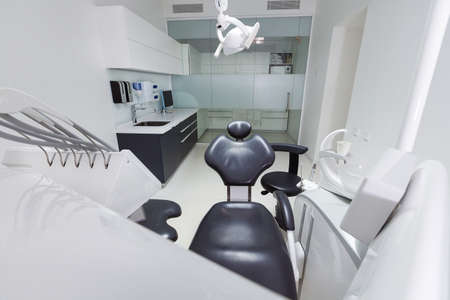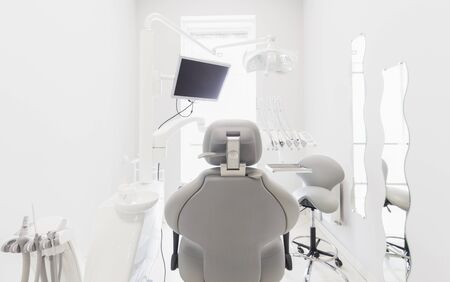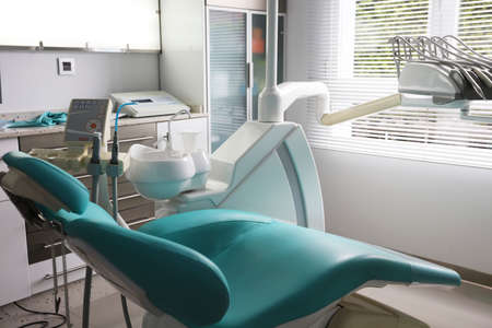 Modern dental practice. Dental chair and other accessories used by dentists.