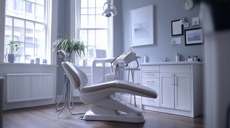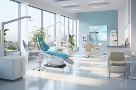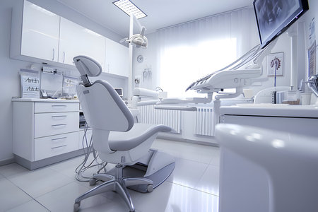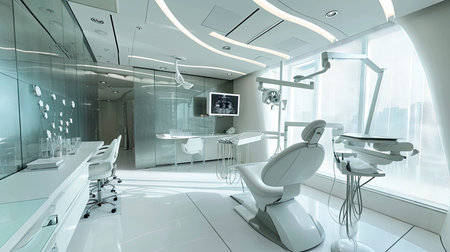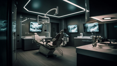 Modern dentist office with clean, bright design and advanced technology generated by artificial intelligence