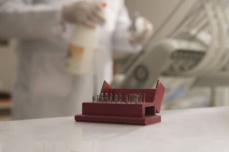 Closeup of dental drills in dentists office
