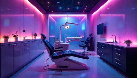 Modern dental clinic interior with vibrant neon lighting design