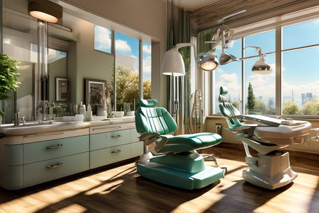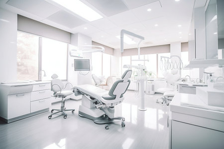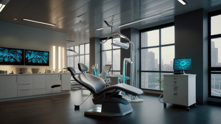 Modern dentist office with clean, bright design and advanced technology generated by artificial intelligence