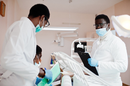 African patient in dentistry sitting in dental chair