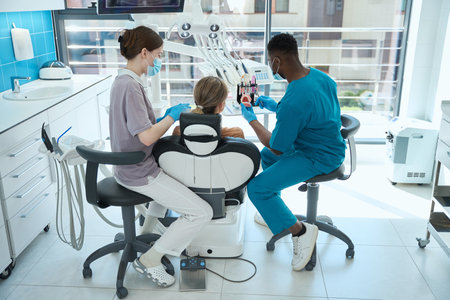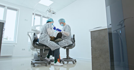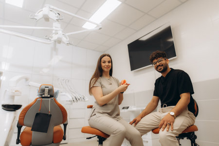Friendly Interaction Between Dentist and Assistant in a Modern Dental Office