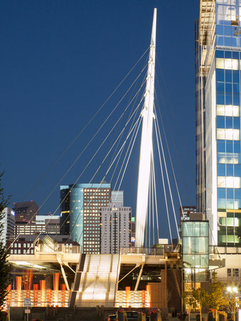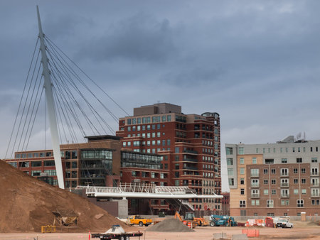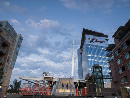 Millennium Bridge structure in the Riverfront Park neighborhood of Denver, Co. Commons Park