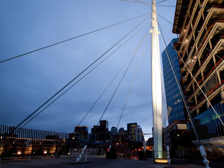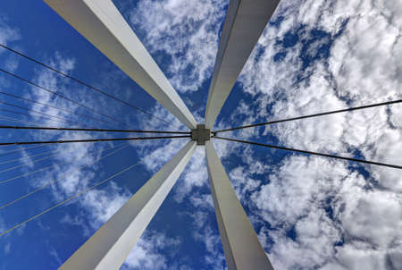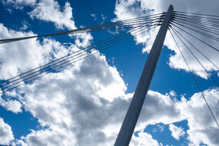 Closeup of Millennium Bridge structure at the Riverfront Park neighborhood of Denver. Commons Park