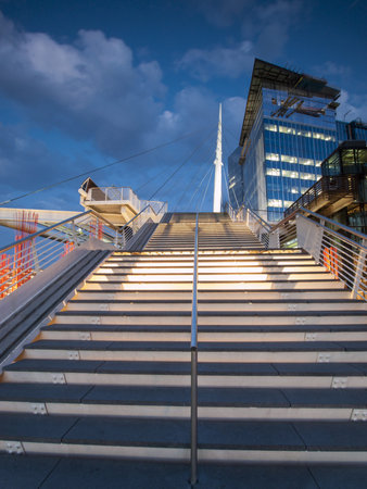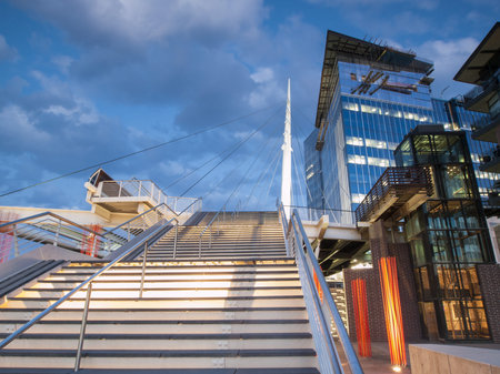 Staircase to. Millennium Bridge in the Riverfront Park neighborhood of Denver. Commons Park