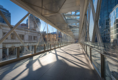 metal braces to support the structure Bridge with pedestrian walkway and vehicle lanes