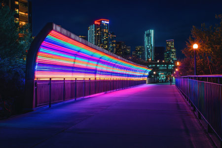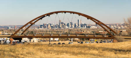 Highland Bridge, a pedestrian bridge connecting the LoHi neighborhood to Downtown Denver. Lower Highlands. Denver, Colorado