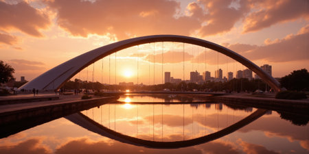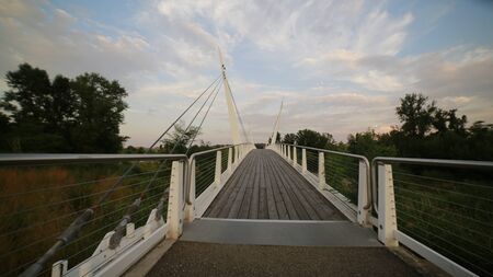 bridge over the river secchia in sassuolo modena with wooden walkway at sunset