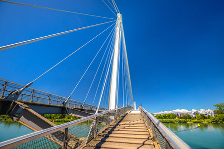 Alessandria modern Maier pedestrian bridge to the medieval citadel. High quality photo