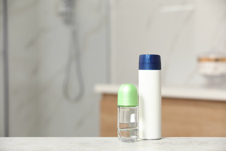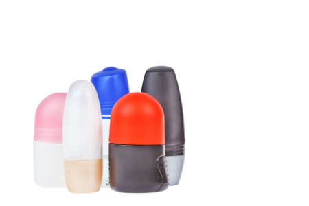 Body antiperspirant deodorants roll-on on two tone background, blank space for label