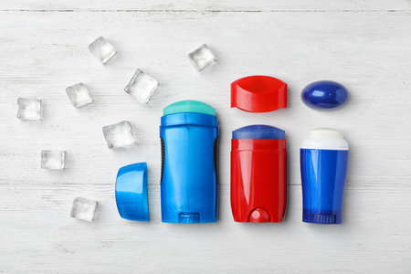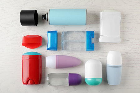 Choice of deodorant or antiperspirant. Looking at the jars on the table. Safe or critical deodorant ingredients