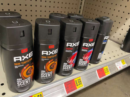 Hephzibah, Ga USA - 06 16 22: KJs IGA retail grocery store deodorants and prices AXE spray variety