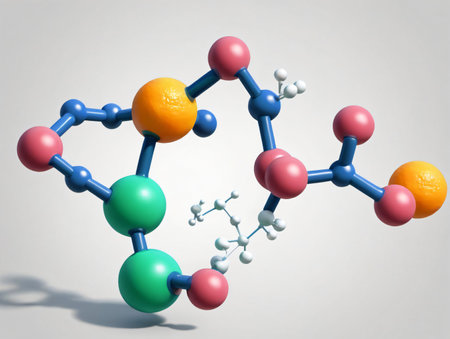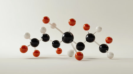 Vividly colored spheres illustrate the connections within a molecular structure, showing the complexity of chemical bonds under soft lighting.