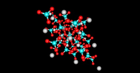 Complex molecules forming a structure with chemical bonds, creating a network of interconnected atoms in a scientific or medical context